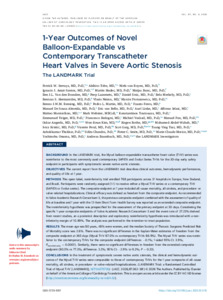 Serruys, Patrick W., Tobe, Akihiro, van Royen, Niels, Amat-Santos, Ignacio J. orcid iconORCID: 0000-0002-2311-4129, Hudec, Martin, Bunc, Matjaz, Van den Branden, Ben J.L., Laanmets, Peep, Unic, Daniel et al (2026) 1-Year Outcomes of Novel Balloon-Expandable vs Contemporary Transcatheter Heart Valves in Severe Aortic Stenosis The LANDMARK Trial. Journal of the American College of Cardiology (JACC), 87 (4). pp. 362-381. ISSN 0735-1097
