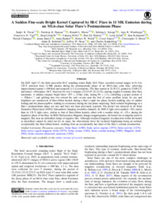 Tiwari, Sanjiv K., Panesar, Navdeep K., Moore, Ronald L., Savage, Sabrina L., Winebarger, Amy R., Vigil, Genevieve D., Lorincik, Juraj, Polito, Vanessa, De Pontieu, Bart et al (2025) A Sudden Fine-scale Bright Kernel Captured by Hi-C Flare in 11 MK Emission during an M1.6-class Solar Flare’s Postmaximum Phase. Astrophysical Journal Letters, 995 (2). L45. ISSN 2041-8205
