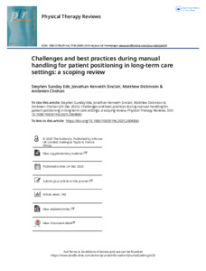 Challenges and best practices during manual handling for patient positioning in long-term care settings: A scoping review.