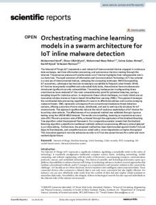 Hanif, Muhammad, Munir, Ehsan Ullah, Rehan, Muhammad Maaz, Ahmad, Saima Gulzar, Ayyub, Kashif and Ramzan, Naeem (2025) Orchestrating machine learning models in a swarm architecture for IoT inline malware detection. Scientific Reports, 16 (1). p. 187.