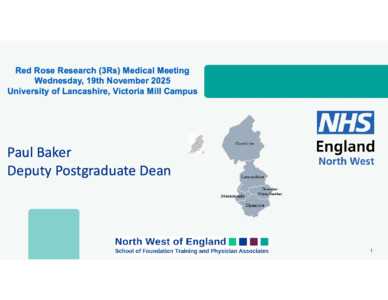 • Talks by speakers such as Professor Paul Baker (Deputy Post Graduate Dean, NIHR Regional Lead for Academic Training) and Professor Andy Ustianowski, Director NIHR North West Regional Research Delivery Network.