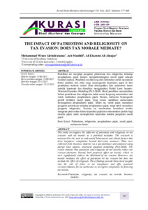 Girindratama, Muhammad Wisnu, Maulidi, Ach and Ali Alnajar, Ali Elazumi (2025) THE IMPACT OF PATRIOTISM AND RELIGIOSITY ON TAX EVASION: DOES TAX MORALE MEDIATE? Akurasi : Jurnal Studi Akuntansi dan Keuangan, 8 (2). pp. 377-400. ISSN 2720-9067