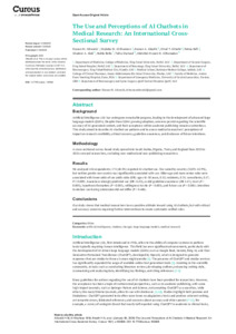 Alturaiki, Hassan M, Al Khamees, Mujtaba M, Alradhi, Hassan A, Alharbi, Ohud T, Kefi, Fatma, Alali, Ghadeer A, Bello, Fadila, Shahzad, Talha and Al Ramadan, Abdullah Husain H (2026) The Use and Perceptions of AI Chatbots in Medical Research: An International Cross-Sectional Survey. Cureus, 18 (1). e100908.