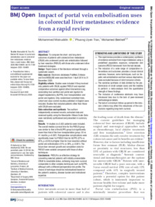 Impact of portal vein embolisation uses in colorectal liver metastases: evidence from a rapid review.