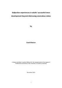 Barton, David John (2026) Subjective experiences in adults’ successful inner development beyond distressing anomalous states. Doctoral thesis, University of Lancashire.