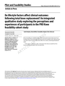 Do lifestyle factors affect clinical outcomes following total knee replacement? An integrated qualitative study exploring the perceptions and experiences of participants in the PRO Knee feasibility cohort study.