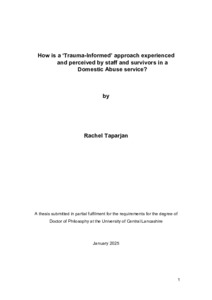 Close, Rachel (2026) How is a ‘Trauma-Informed’ approach experienced and perceived by staff and survivors in a Domestic Abuse service? Doctoral thesis, University of Lancashire.