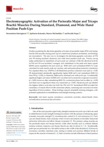 Electromyographic activation of pectoralis major and triceps brachii during diamond, standard and wide hand positioning push-ups: A comparative study.