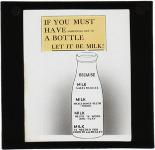 Lantern Slide part of the Milk Series showing the benefits of milk