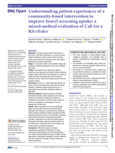 Understanding patient experiences of a community-based intervention to improve bowel screening uptake: A mixed-method evaluation of Call for a Kit clinics.
