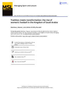 This study examines the emergence and development of women’s football in the Kingdom of Saudi Arabia (KSA), which can be employed as a lens through which broader societal transformation under the Vision 2030 agenda may be examined. Drawing on a narrative review of policy documents, academic research, and media discourse, the study traces the transition from historical exclusion and informal participation to the establishment of formalised leagues, a national team, and dedicated governance structures. The analysis positions women’s football as both reflective and generative of social change. It demonstrates how football has been mobilised as a visible marker of reform, projecting inclusion and modernity domestically and internationally while simultaneously creating new opportunities for participation and leadership among Saudi women. The paper highlights persistent tensions, including regional inequality, uneven access, limited female authority within governance structures, and ongoing cultural and societal negotiation surrounding gender norms. This study argues that women’s football operates within a dynamic field, shaped by state policy, grassroots agency, and global sporting frameworks. Findings reiterate the significance of institutional support in enabling rapid transformation while raising questions around sustainability and structural integration.