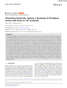 Baron, Andrew and Barrow, Charlotte Louise j (2026) Theorizing Patriarchy Against a Backdrop of Workplace Sexism and Stress in UK Academia. Gender, Work & Organization . ISSN 0968-6673