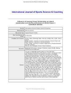 Influence of maximal linear deceleration on lateral deceleration and shuffle performance in NCAA power 4 basketball athletes.