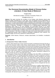Zhai, Yinghui (2026) The Overseas Dissemination Model of Chinese Online Literature: A Case Study of Webnovel. Journal of Education, Humanities and Social Sciences, 63 . pp. 254-259. ISSN 2771-2907