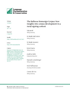The Balinese Homesign Corpus: New insights into corpus development in a rural signing context.