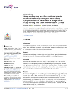 Sleep Inadequacy and the Relationship with Mucosal Immunity and Upper Respiratory Symptoms in Elite Swimmers: A Longitudinal Study Leading into the Commonwealth Games.