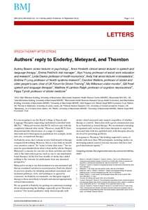 Speech therapy after stroke. Authors’ reply to Enderby, Meteyard, and Thornton.