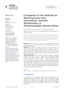 Comparison of the methods for detecting lower limb asymmetries: isokinetic dynamometry vs. tensiomyography derived indices.