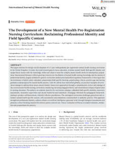 The Development of a New Mental Health Pre‐Registration Nursing Curriculum: Reclaiming Professional Identity and Field Specific Content.