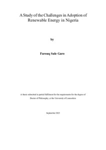 Garo, Farouq Sule (2025) A Study of the Challenges in Adoption of Renewable Energy in Nigeria. Doctoral thesis, University of Lancashire.