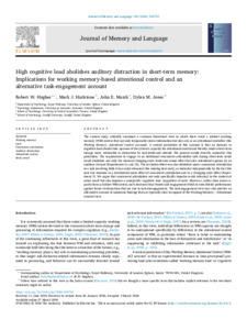 High cognitive load abolishes auditory distraction in short-term memory: Implications for working memory-based attentional control and an alternative task-engagement account.