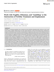 Work–Life Fragility, Dilemmas, and “Gambling” at the Intersection of Fertility Treatment and Employment.