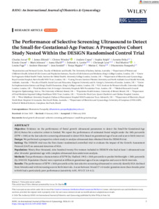 The Performance of Selective Screening Ultrasound to Detect the Small‐for‐Gestational‐Age Foetus: A Prospective Cohort Study Nested Within the DESiGN Randomised Control Trial.