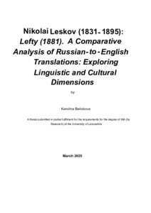 Belickova, Karolina (2025) Nikolai Leskov (1831-1895): Lefty (1881). A Comparative Analysis of Russian-to-English Translations: Exploring Linguistic and Cultural Dimensions. Masters thesis, University of Lancashire.