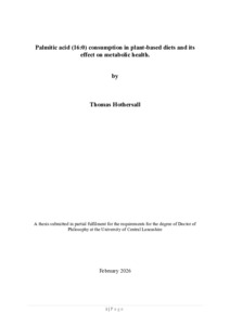 Hothersall, Thomas (2026) Palmitic acid (16:0) consumption in plant-based diets and its effect on metabolic health. Doctoral thesis, University of Lancashire.