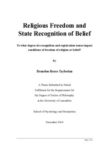 policies discriminate based on religion or belief. This thesis identifies the frequency, severity and variety of recognition and registration issues across diverse cultural, political and religious contexts. Using case studies, it develops ways of measuring the degree to which recognition and registration issues impact conditions of freedom of religion or belief (FoRB). It concludes that recognition and registration play a significant role in limiting or interfering with the freedom of religious communities.