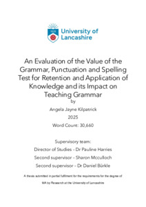 An Evaluation of the Value of the Grammar, Punctuation and Spelling Test for Retention and Application of Knowledge and its Impact on Teaching Grammar.