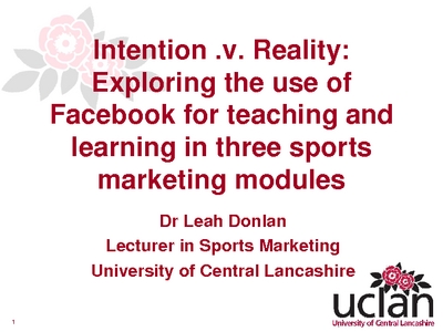 Intention .v. Reality: Exploring the use of Facebook for teaching and learning in three sports marketing modules.