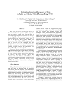 Houmb, Siv Hilde, Franqueira, Virginia Nunes Leal and Engum, Erlend A. (2008) Estimating Impact and Frequency of Risks to Safety and Mission Critical Systems Using CVSS. In: ISSRE 2008 Supplemental Proceedings: 1st Workshop on Dependable Software Engineering, 11 November 2008, Seattle, USA.