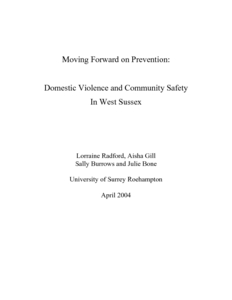 Radford, Lorraine orcid iconORCID: 0000-0002-6095-3845, Gill, Aisha, Burrows, Sally and Bone, Julie (2004) Moving Forward on Prevention: Domestic Violence and Community Safety. Project Report. University of Surrey, Roehampton.