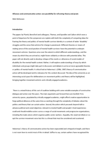 means by which they are arrived at, might foster solidarity or division with potential allies. This paper will not directly seek to develop critique of the merits or otherwise of social models of disability for the mental health context. Rather, it will explore understandings of ways by which individuals and groups might take part in discussion and debate to arrive at more agreeable theories