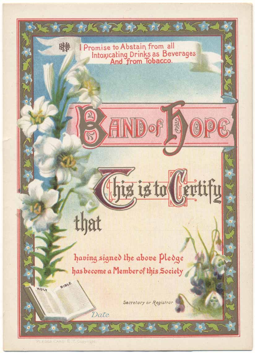 Livesey Collection LIS Special Collections UCLan Pledge Band of Hope Blank. Band of Hope.