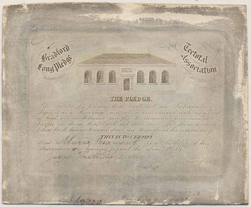 Livesey Collection LIS Special Collections UCLan (1849) Pledge Bradford Teetotal Association Maria Beaumont. Bradford Teetotal Association.