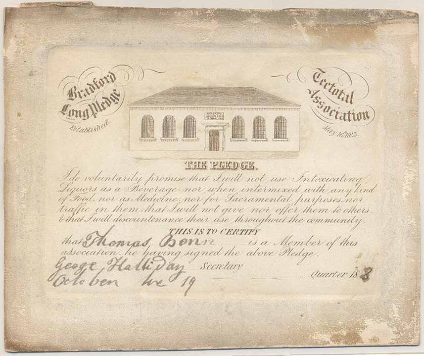 Livesey Collection LIS Special Collections UCLan (1848) Pledge Bradford Teetotal Association Thomas Bonn. Bradford Teetotal Association.