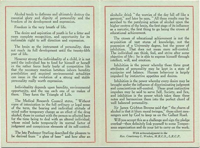 Alcohol as destroyer of the personality and the freedom of its expression. Inhibition as the power to keep personality in balance. Comments by the Medical Research Council, Professor Starling and Sir James Crichton Browne. With acknowledgement to Rev. Courtnay C. Weekes.