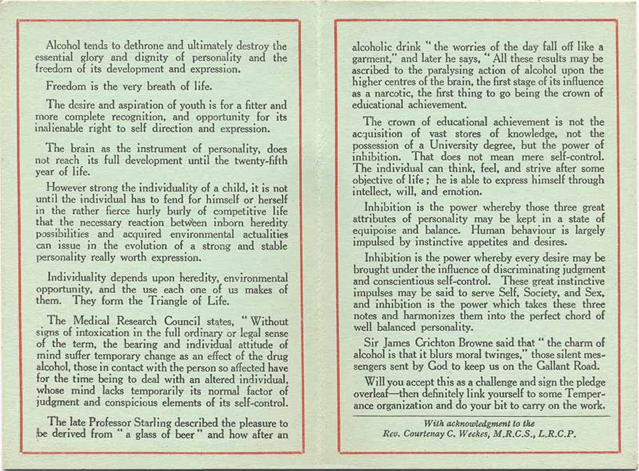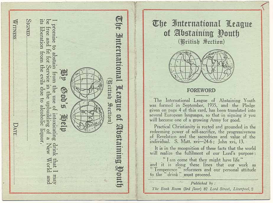 Livesey Collection LIS Special Collections UCLan (1935) The International League of Abstaining Youth (British Section). The Book Room, Liverpool.