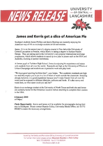 Media and Promotion Office (2003) News release: James and Kerris get a slice of American Pie. Other. University of Central Lancashire (UCLan), Preston.