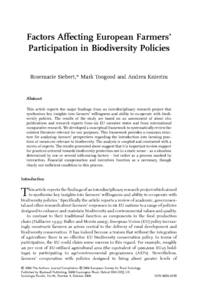 This article reports the major findings from an interdisciplinary research project that synthesises key insights into farmers’ willingness and ability to co-operate with biodiversity policies. The results of the study are based on an assessment of about 160