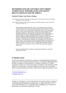 DETERMINANTS OF CONSTRUCTION FIRMS' COMPLIANCE WITH HEALTH AND SAFETY REGULATIONS IN SOUTH AFRICA.