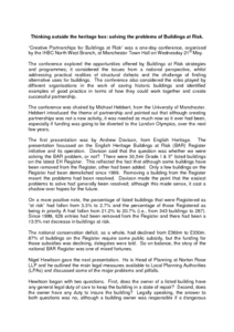 Parsons, Keith (2008) Thinking Outside the Heritage Box: Solving the Problems of Buildings at Risk. Context, 107 . pp. 11-12.