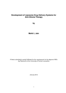 Jain, Mohit Laxmilal (2012) Development of Liposome Drug Delivery Systems for Anti-Glioma Therapy. Masters thesis, University of Central Lancashire.