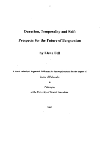 Fell, Elena Vladimirovna (2007) Duration, Temporality and Self: Prospects for the Future of Bergsonism. Doctoral thesis, University of Central Lancashire.