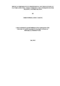 Carling, C.J. (2012) PHYSICAL PERFORMANCE IN PROFESSIONAL SOCCER MATCH-PLAY: FACTORS AFFECTING, CHARACTERISTICS AND CONSEQUENCES FOR TRAINING AND PREPARATION. Doctoral thesis, University of Central Lancashire.