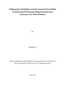 Fan, Zai Ming (2012) Mathematical Modelling of Grid Connected Fixed- Pitch Variable-Speed Permanent Magnet Synchronous Generators for Wind Turbines. Masters thesis, University of Central Lancashire.