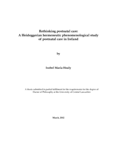 Healy, Maria Isobel (2012) Rethinking postnatal care: A Heideggerian hermeneutic phenomenological study of postnatal care in Ireland. Doctoral thesis, University of Central Lancashire.