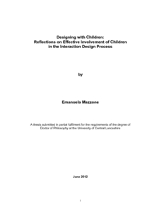 Mazzone, Emanuela (2012) Designing with Children: Reflections on Effective Involvement of Children in the Interaction Design Process. Doctoral thesis, University of Central Lancashire.